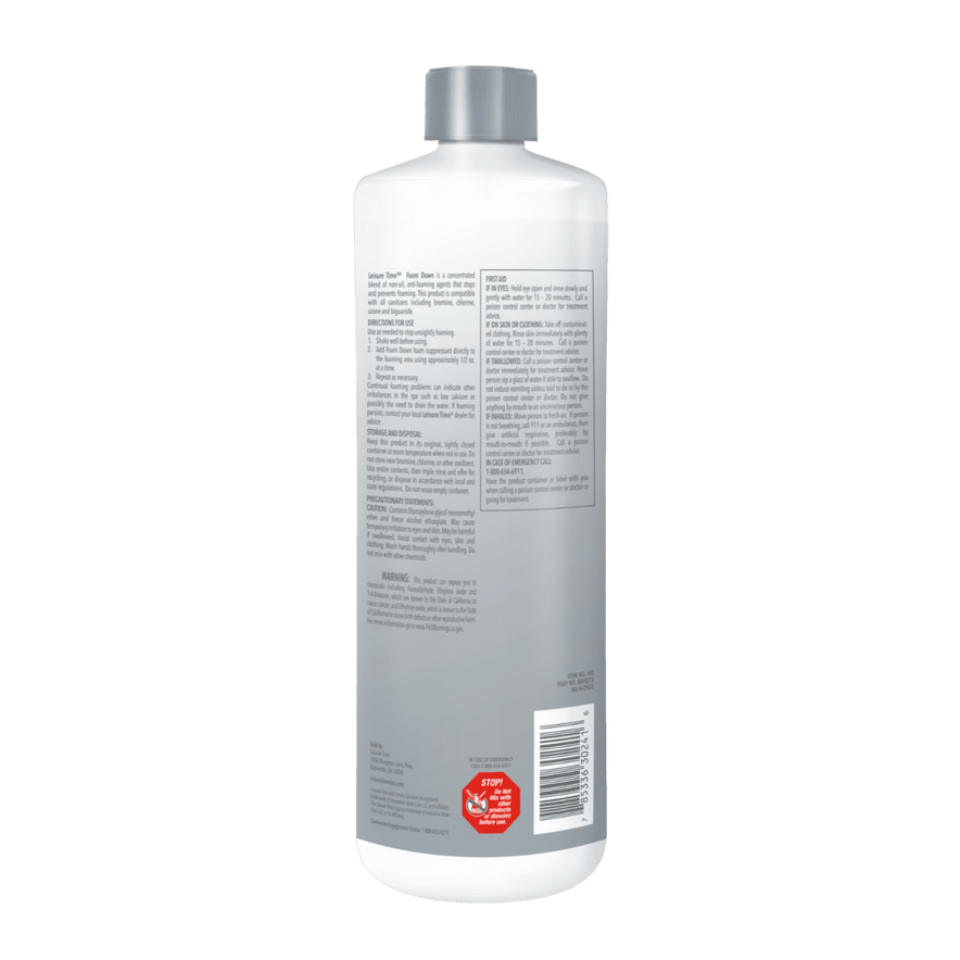 Leisure Time Foam Down stands out as a concentrated foam suppressant that is non-oily. What sets this product apart from other foam suppressants is its tailored design for use in hot water settings. Featuring a convenient flip-top lid for precise and direct application, this product addresses foaming issues effectively. It's crucial to recognize that persistent and excessive foaming signals potential water problems. Whether your hot tub water is sanitized with any method, Foam Down remains effective in controlling foam.